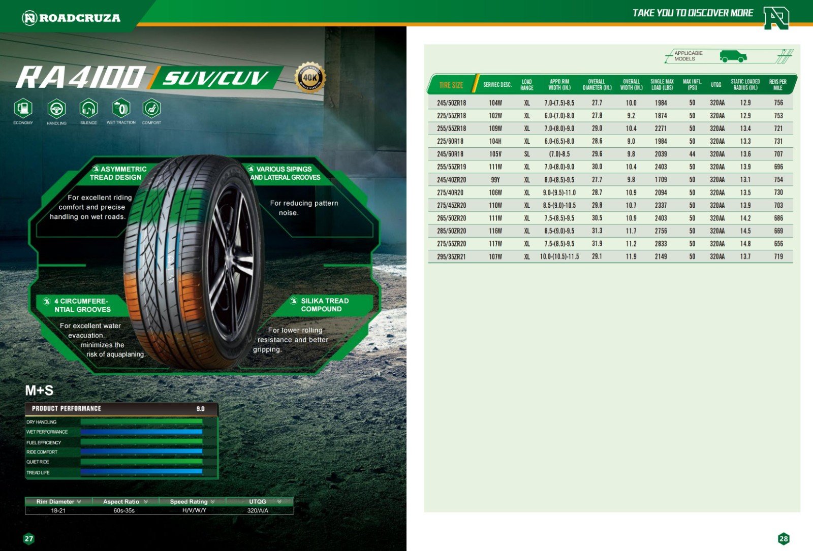 For excellent water evacuation,minimizes the risk of aquaplaning